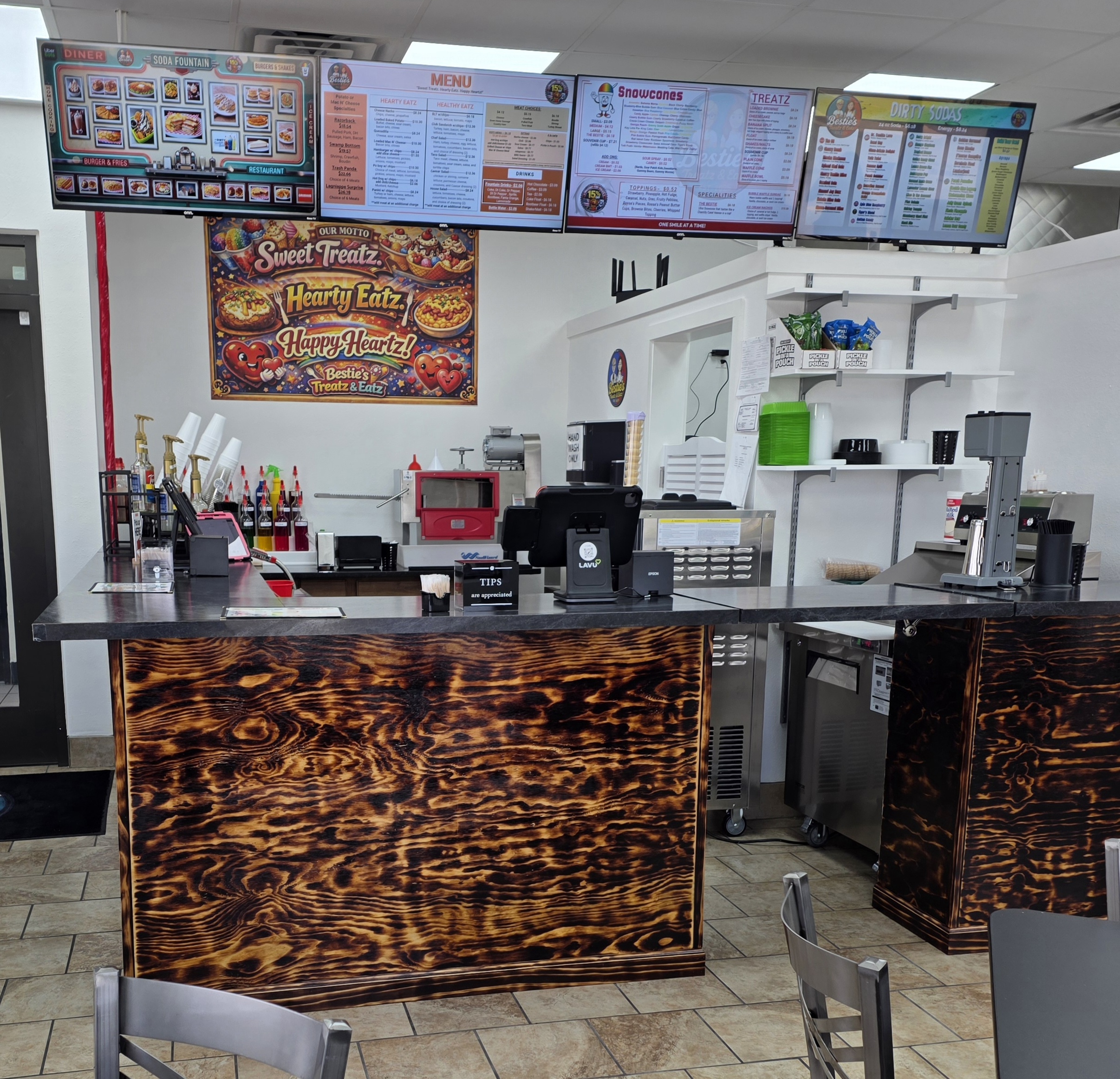 Built by besties with a love for good food and good vibes, this isn’t just a place to eat-it’s a whole mood. We’re serving up hearty eatz that hit the spot and sweet treatz that fix just about anything life throws at you. Bad day? Get dessert. Good day? Definitely get dessert. From loaded comfort favorites to over-the-top treatz, everything we make is done with flavor, fun, and just the right amount of extra. Because around here, basic is not on the menu!