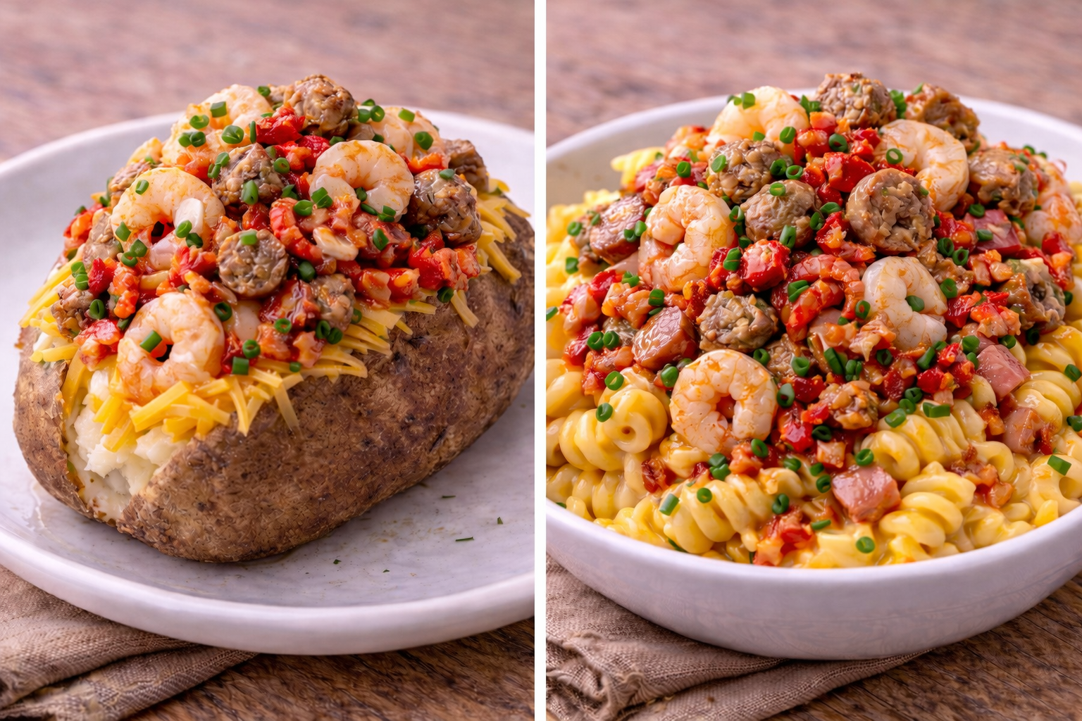 Your choice of a loaded potato, loaded mac n’ cheese, or cheese nacho topped with shrimp, crawfish tails, and boudin.